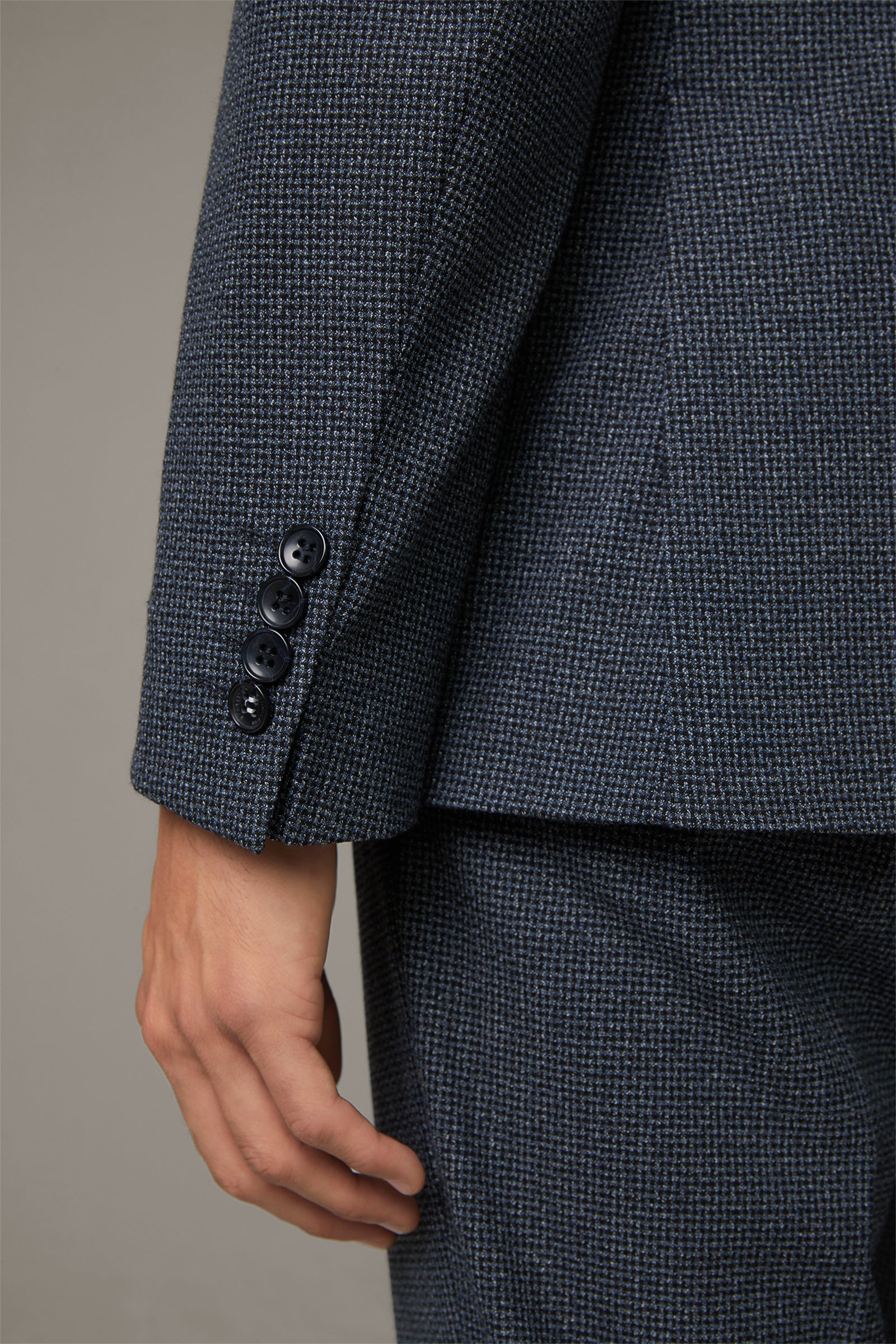 - Decorative slot with 4 buttons at the bottom of the sleeves.