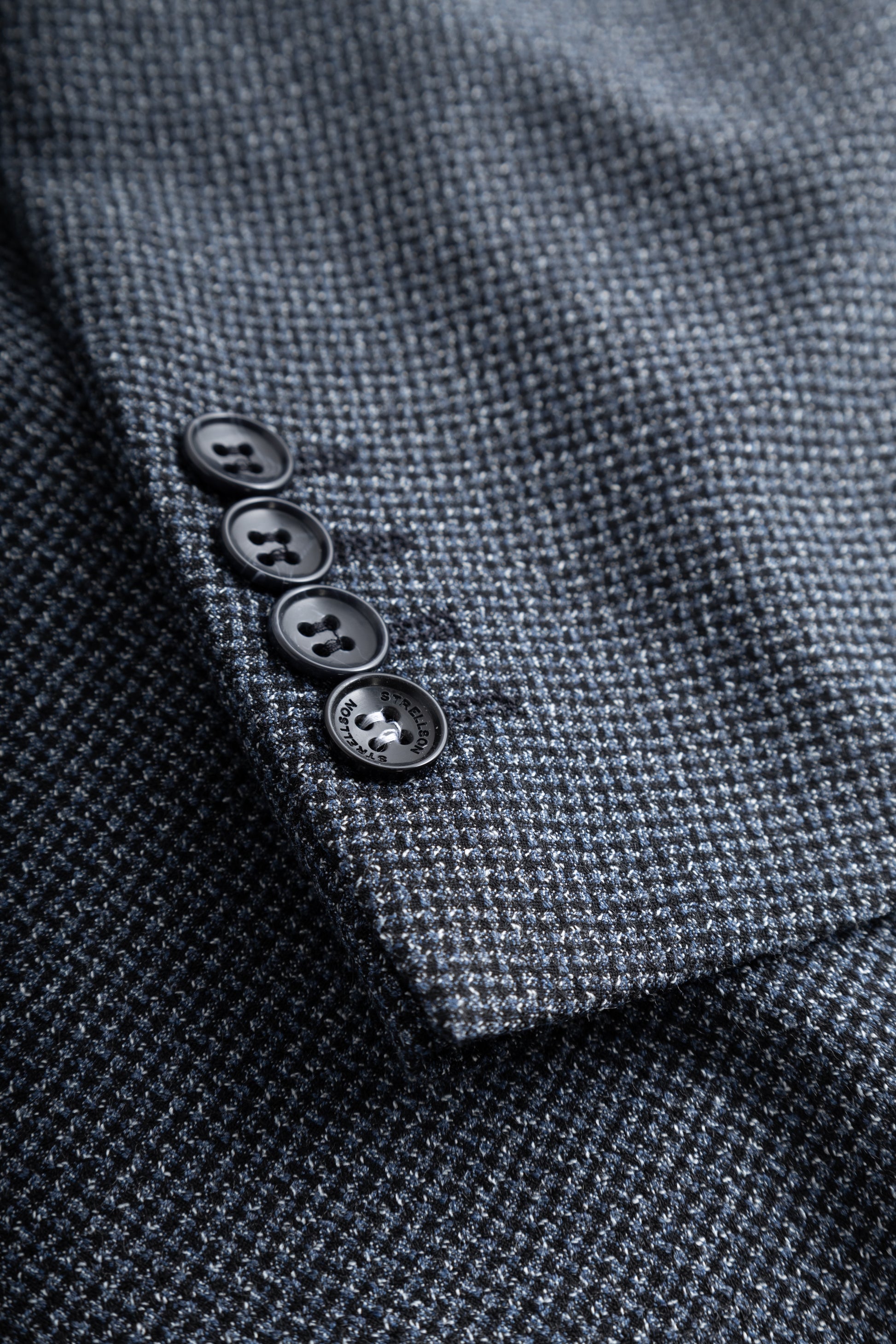 - Closes with 2 mottled buttons.