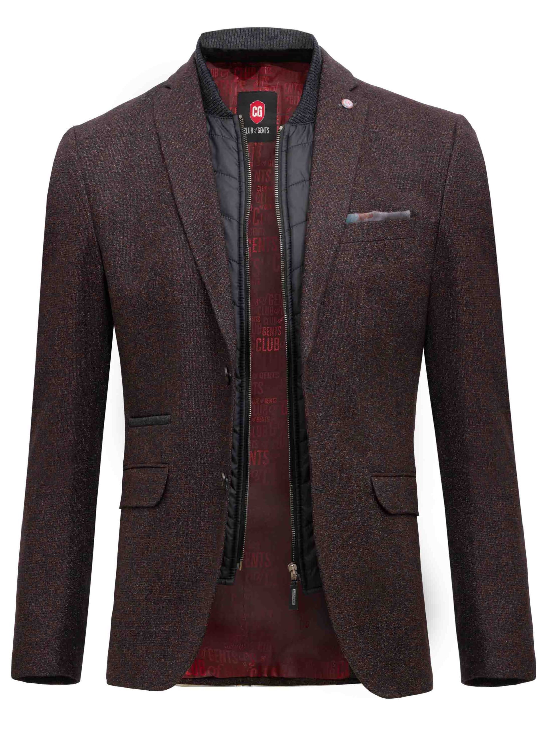 A refined wool tweed blazer featuring a modern tailored fit and a practical inner zip closure for added warmth and structure. Crafted from premium textured tweed, it offers timeless elegance with a functional twist—perfect for both formal and smart-casual styling.